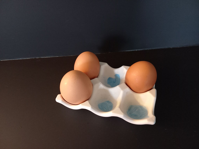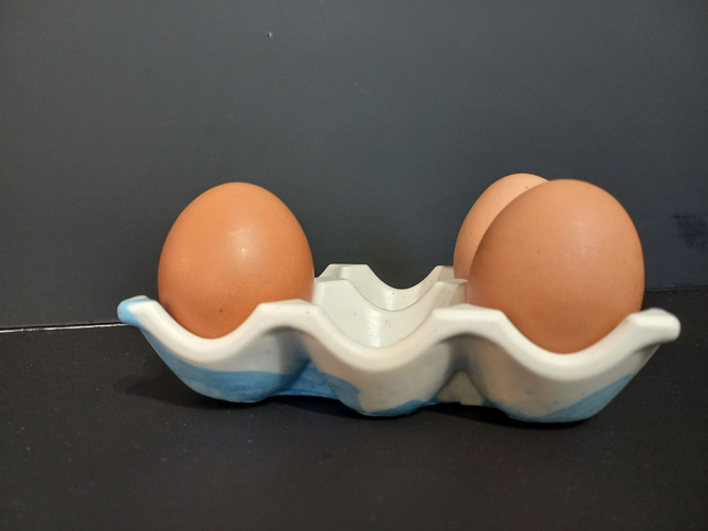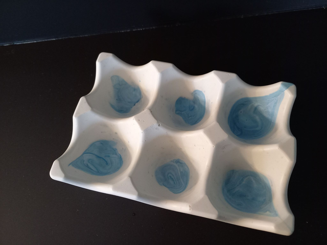 Porte-oeufs en jesmonite fait main au design ondulé. Sa finition marbrée en bleu et blanc lui confère une touche moderne et artisanale.Idéal pour ranger vos oeufs dans la cuisine.