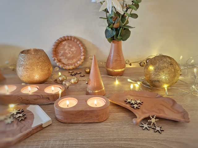 Chaque pièce est coulée, poncée et vernie à la main, ce qui lui donne un caractère unique — une petite lueur artisanale qui invite à ralentir et à profiter des moments simples. ✨